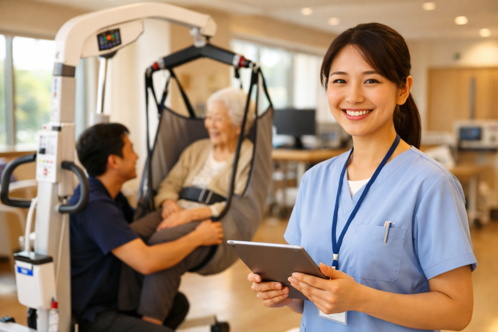 介護職員の約60%が腰痛を経験しており、その多くが離職の主要因となっています。みずほ厚生センターでは、移乗リフトやスライディングシートを全施設で100%導入し、スタッフの身体的負担を徹底排除しています。